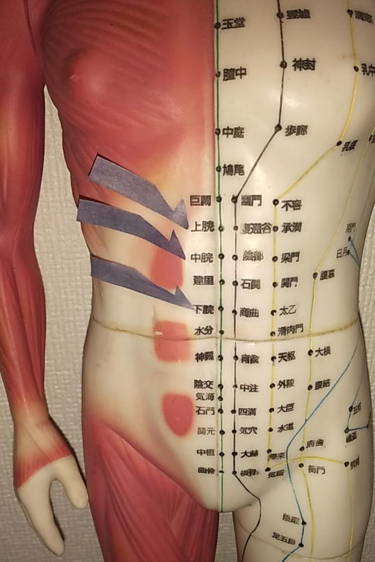 このツボは直下が胃に当たり内臓にとても響くツボです